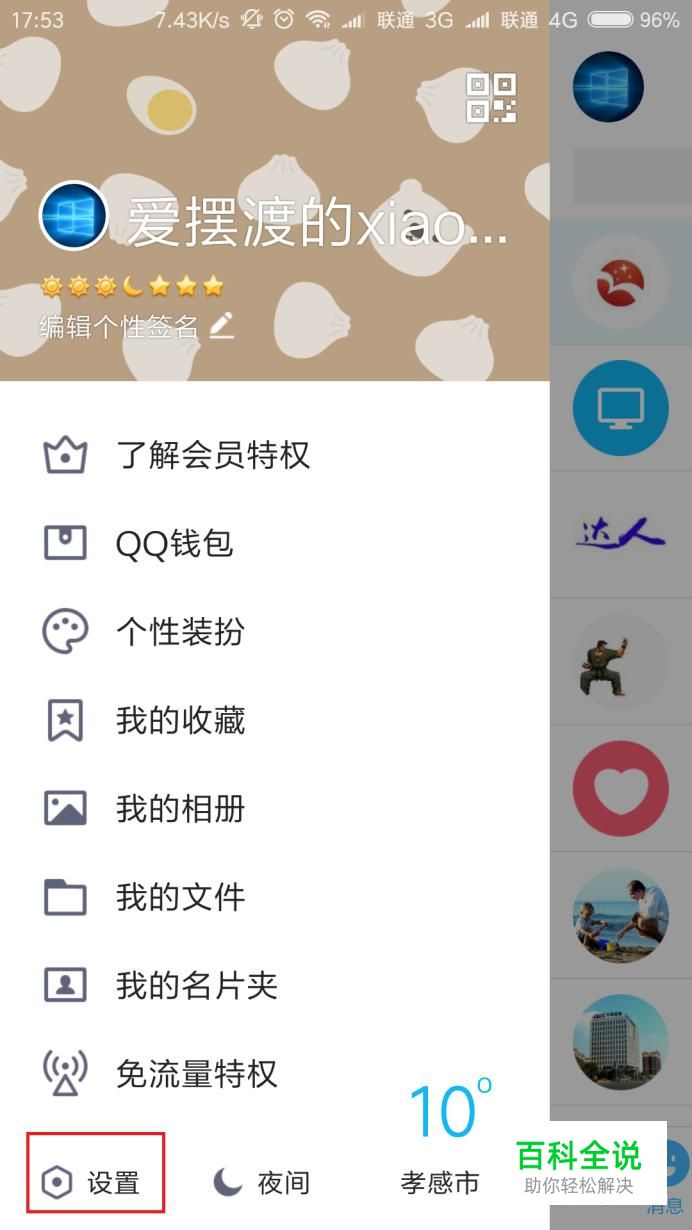 首先,请大家打开手机QQ软件,登录QQ软件之后,点击页面左上角的个人头像,选择“设置”选项。