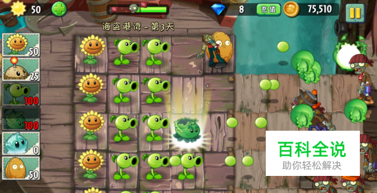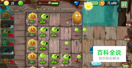 总的来说,主线的关卡都不难。非RMB玩家就是这样了,我们也没有新的种子还是那些种子一样的用,一样通关。少了一些体验新鲜东西的刺激吧~ 在海盗第三关中,大家可以按照常规办法来种植物,先种满一排向日葵,再种豌豆射手或者卷心菜,需要注意的是当出现海鸥僵尸的时候,还是建议大家用坚果来挡住,以防万一。 还需注意的是,这关要多种豌豆射手,木桶僵尸非常多,比较难打,当然我们还有能量豆,还有土豆地雷,关键时刻要用。