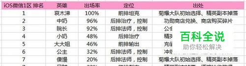 2.从第四名开始的出场率就降到50%及以下了,这说明后面的英雄选择开始出现分化和多样化。同时也从侧面反映了哀木涕、院长加丁、中奶怀特的热门。 【分析】:哀木涕、中奶怀特、院长加丁这三大巨头一个是主T,一个是控场,一个是辅助,各自的功能性极强不可替代,另外的两个位置涉及的输出英雄就目前而言可以选择的较多,相对的出场率会偏低。