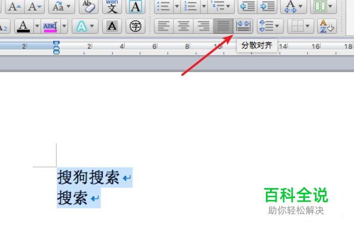 我们先选中这二行文字,然后点击上方的‘分散对齐’