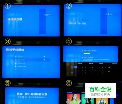 打开电视机,就会出现如下配置界面。按照屏幕提示,6步就可以搞定。