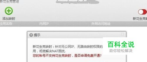设置。在浏览器输入花生壳官网域名地址进入花生棒设置页面,先点击内网映射页面,再进入添加映射界面,在内网映射处选择自定义应用,并按图提示填入应用名称、内网主机和内网端口,填入完毕后点确定退出添加映射界面。