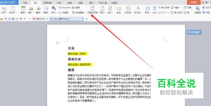 找到文本框上方的工具栏点击“插入”,再找到“页眉和页脚”然后点击