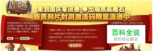 2011年注定是魔域辉煌的一年,从魔域公测六周年纪念,到现在的2011第二部资料片的发布,无不见证着魔域一天天的壮大。 在2011年国庆魔域新资料片发布之际,官方正在征集新资料片名称,希望大家都去说说自己心目中的新资料片名称。同时,话题PK活动也在如火如荼地进行: