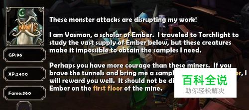 每个任务会提示要做什么,大概都是去矿坑里捡回什么宝物之类的。然后会给金币、经验、及名声和物品,玩家可以决定接不接