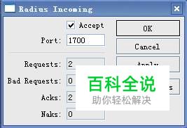 选中配好的RADIUS服务,点击 INCOMING,配置NAS端口,此端口是为配合蓝海卓越的计费系统,进行用户停机用的,此端口通常填写3799或1700。