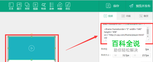 将获取到的视频通用代码粘贴到“视频通用代码”文本框中,调整视频大小和位置。点击右上角保存,即成功插入视频。