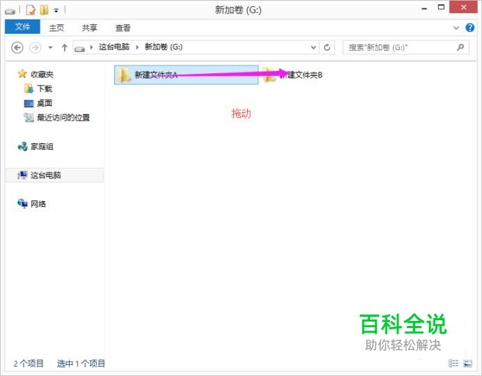 我们要把A移动B,我们直接把A往B里面拖动就好了,如图。