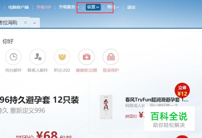 登录需要修改密码的邮箱账号,在邮箱主页面中,点击“设置”按钮。