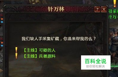 找到针万林交任务后。会发现这里还有2个任务(可疑的人,兵器原料)