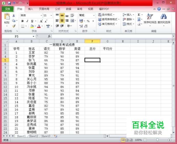 然后我们按总分从高到底排序。(总分高,平均分自然也高) 选择”总分“栏
