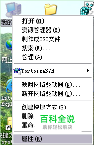 2、右单击“我的电脑”->“属性”