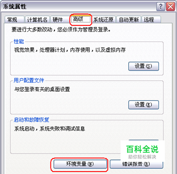 3、点击“高级”->“环境变量”