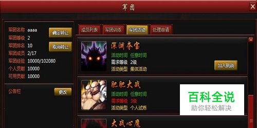 小伙伴们,想体验下在175ha《街机三国》中畅享无处不在的痛快感以及坐拥天下兵马的威武感吗?心中要是有这样的宏图大志,又不想让自己后悔,就不能错过175ha《街机三国》中的军团训练!下面小编简单介绍下军团哇,这样亲们才能得心应手的作战呐! 在175ha《街机三国》中,玩家每天都要面对,普通副本,精英副本,魔王副本,都闯荡于战场之中,如此频繁的面对生与死,玩家更是要注意平时的锻炼了,那么何处是锻炼圣地呢?答案自然去军团里找。 点击军团活动,便能进入军团活动的具体信息,这里玩家可以得到充分的锻炼,随着军团的等级的不断提升,会开放越来越多的军团活动,也就是更多的锻炼方式。来到军团活动,第一件事便是为自己增加士气,士气高涨能让我们的锻炼更加有效。 桃园结义也是不能错过的,邀请好友一同刻上兄弟情义,结连羁绊,在游戏中寻找到拥有统一目标的伙伴,在游戏中找到拥有统一价值观的伙伴,让自己的游戏过程,不再是一个人的埋头死磕,而是互动成长。 接下来才是重头戏,2级开放的深渊夺宝,玩家可以呼唤军团成员一同来参加,一同来面对强力BOSS,用强力的BOSS来训练整个军团的实力,在训练结束之后,玩家可以领取到奖励,奖励好坏由造成的伤害来决定。 之后是训练玩家的耐力,3级开放肥肥大战,玩家要面对10波的扔雷兵,在这一场训练中,玩家考虑不仅是击退,更要考虑回避,因为每一波的肥肥血量都会逐步增加,击杀难度也就越发的高。3分钟的生存时间,玩家能够如何展现实力呢?这便是训练的意义所在。 最后训练的是玩家的心智,4级开放大战心魔,玩家只能一个人面对的训练,而训练对象,就是玩家的幻影,而且实力还在玩家之上,最大的敌人是自己永不会错,那么玩家会使用怎样的手段来击退“自己”呢?这便是训练的目的所在。 立足于三国浪潮中,不进则退,玩家不是小说里的主角,无师自通,抑或无练自强,唯有不断的挑战自我,挑战强者,才能进步,才能在175ha《街机三国》中,傲立群英之上,坐拥天下之王座。 敢来175ha《街机三国》挑战军团吗?带上你的伙伴,开拓一片大好疆土吧!天下宝座非你莫属!