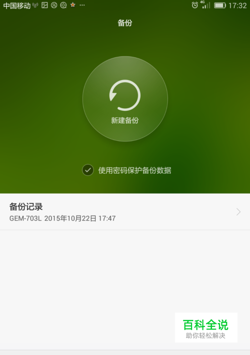 现在的智能手机都有备份功能,找到你手机上的备份,点击新建备份,如图: