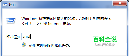 我们使用快捷键WIN+R打开运行对话框,输入CMD打开命令提示符窗口。