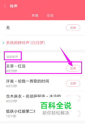 点击【应用】,即可使铃声变成刚刚设置的那首歌。
