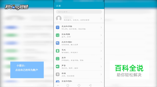 打开“设置”,点击自己的“华为账户”。
