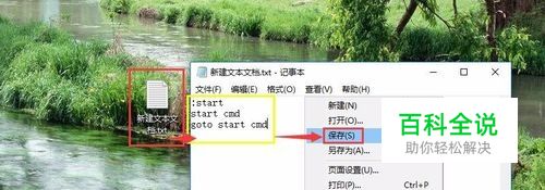 然后打开我们新建的文本,然后输入黄色框框里面的代码,然后保存这个文本。如图所示。