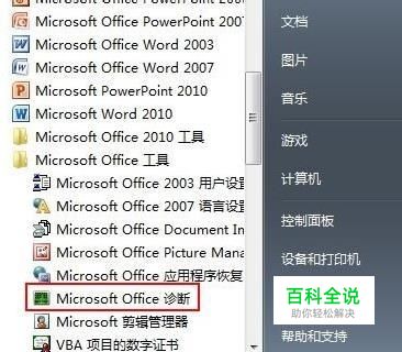 ②我们在你开始菜单中单击所有程序,找到Microsoft office诊断。