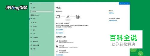 方法二:打开“网络和Internet设置”,选择“网络和共享中心”,在新的界面中选择“连接”后面的选项,在新出现的对话框中选择“属性”。