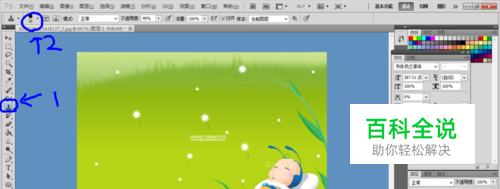 选择左边菜单栏中的,“仿制印章工具”; 然后可以按一下上面菜单栏上的“画笔”,根据要涂抹的面积的大小,进行选择涂抹时的大小和硬度