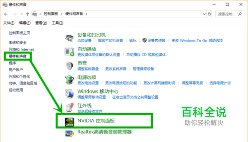 在打开的【硬件和声音】,选择【NVIDIA控制面板】,打开控制面板