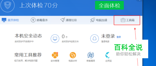 如图所示,我们在电脑管家主界面点击工具箱这一项。