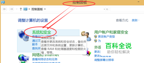 先打开控制面板找到系统和安全点击进入,如图所示;