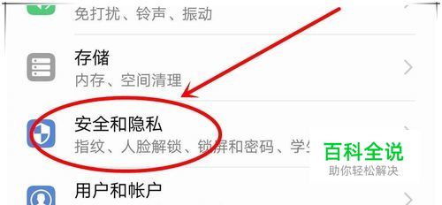 在“设置”页面,找到“安全和隐私”选项,点击进入。