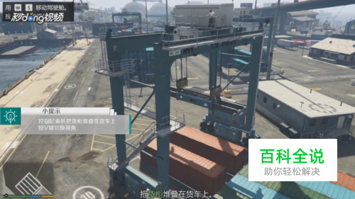 控制起重机,把“货柜”堆叠在货车上,按V键切换视角。