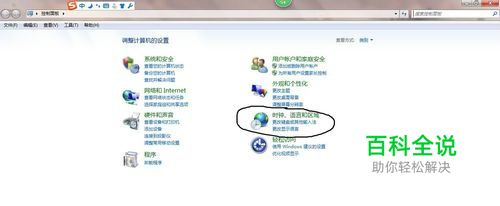在控制面板页面中,找到“时钟、语言和区域”并点击。