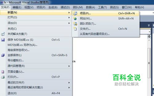 打开VS2010程序,点击【文件】-【新建】-【项目】。