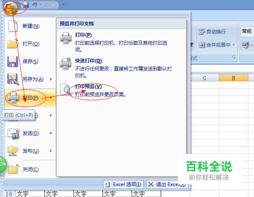我们预览一下看看,点击左上角的图标,然后点击打印,在点击打印预览,如图所示