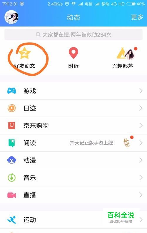 打开QQ进入QQ好友动态。