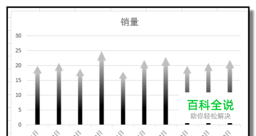 图表的蓝色柱形不是很满意,想把柱形修改为黑色渐变的箭头形状。 操作如下: 顺序点击:插入-插图-形状-上箭头
