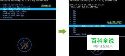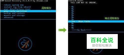 - wipe cache partition 清除缓存 - Yes - Wipe Cache 确定清除缓存