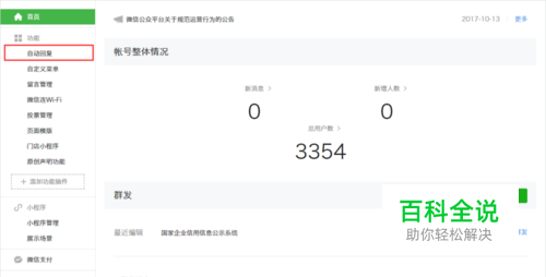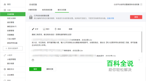 微信公众号后台自动回复设置。