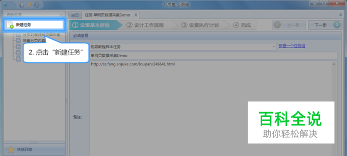 设置采集任务的基本信息,基本信息主要是一个任务分组,用来管理多个任务,方便使用,另外就是任务的名字,然后还有备注信息,方便记录任务的一些描述,这些信息在任务比较多的时候就很有用了。