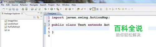 第一步打开eclipse软件,这里新建一个类继承一个父类,以作样例,如下图所示: