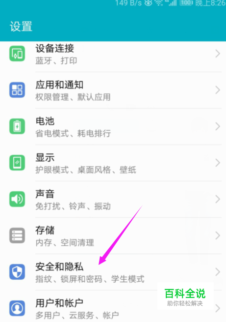 那么,我们点开下【设置】之后,那么,接着按开【安全与隐私】,如图。