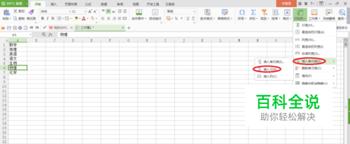 第三,鼠标左键点击选中你要插入行单元格的位置,新插入的单元格会插入到点击选中的上一行,这里我们在物理前面插入一行。