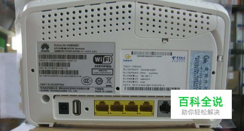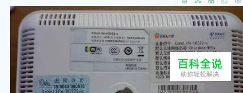 从设备机身标签区分,看标签是最直接粗暴的方法。一般来说,在设备背面的标签上都会标明了设备的名称、型号以及其它参数。由于光猫一般都是网络运营商配送的,所以光猫的标签上除了设备型号和参数外,通常还标有网络运营商的标志或LOGO等,如下图: