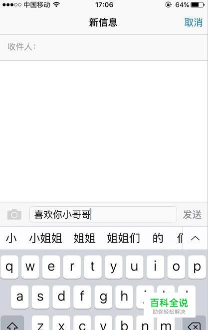 打开iphone手机短信,在编辑框里输入文字,复制这段文字