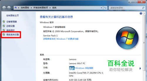 然后在系统信息窗口中,点击左边的 “高级系统设置”,如图所示