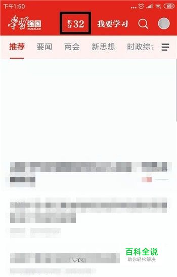 打开学习强国,然后在顶部可看到我们的积分,点击【积分】。