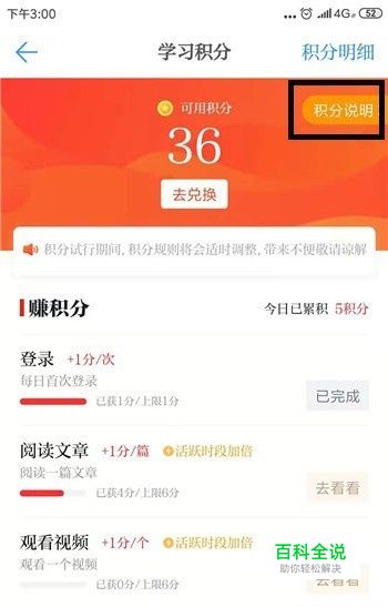 这样在积分攻略中就能看到如何获得积分了,总之就是参与文章的阅读以及考试等都可以获得积分。