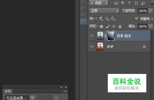 点击刚才添加的蒙版,然后在图像上面使用渐变工具,使黑白的图片只显示一部分,这样子就可以和底层的渐变映射调色出来的图片进行融合。