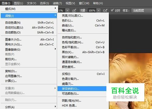 首先导入我们的图片,然后开始添加我们的效果,选择“图像——调整——渐变映射”。