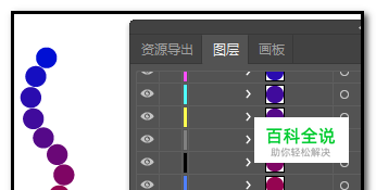 关闭图层面板; 鼠标在画板上,选择工具的鼠标点击某个圆,这时,你会发现,可以单独选中一个圆;而且可以单独编辑圆。 把原来一组的对象拆分成单个。